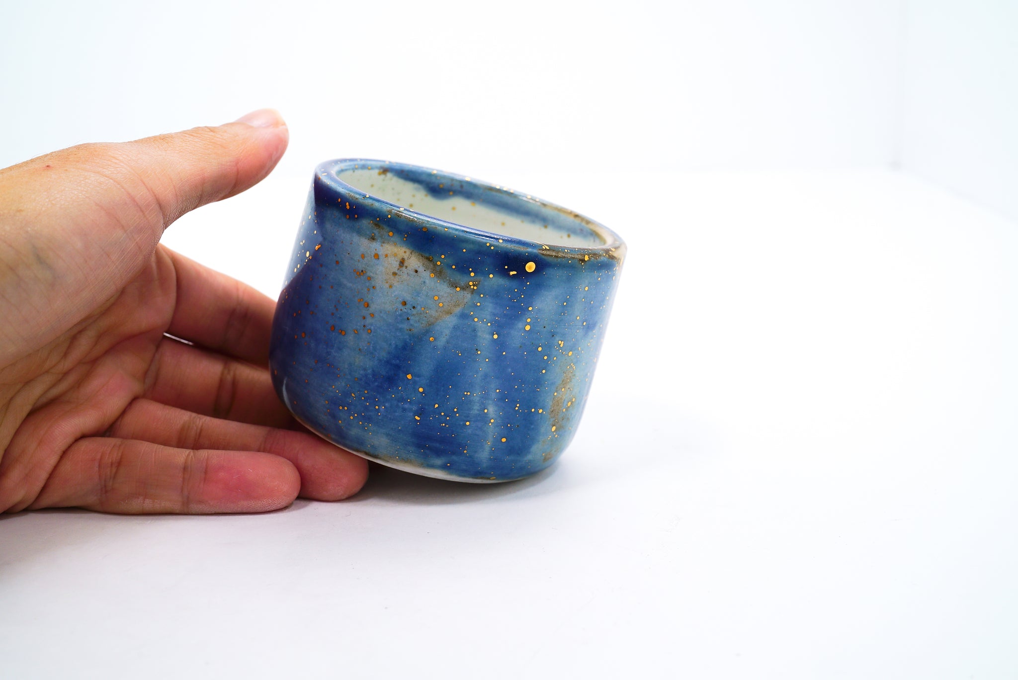 This piece is a part of the Star Nebula Cobalt Blue Collection made of porcelain clay and splashes of 22k gold